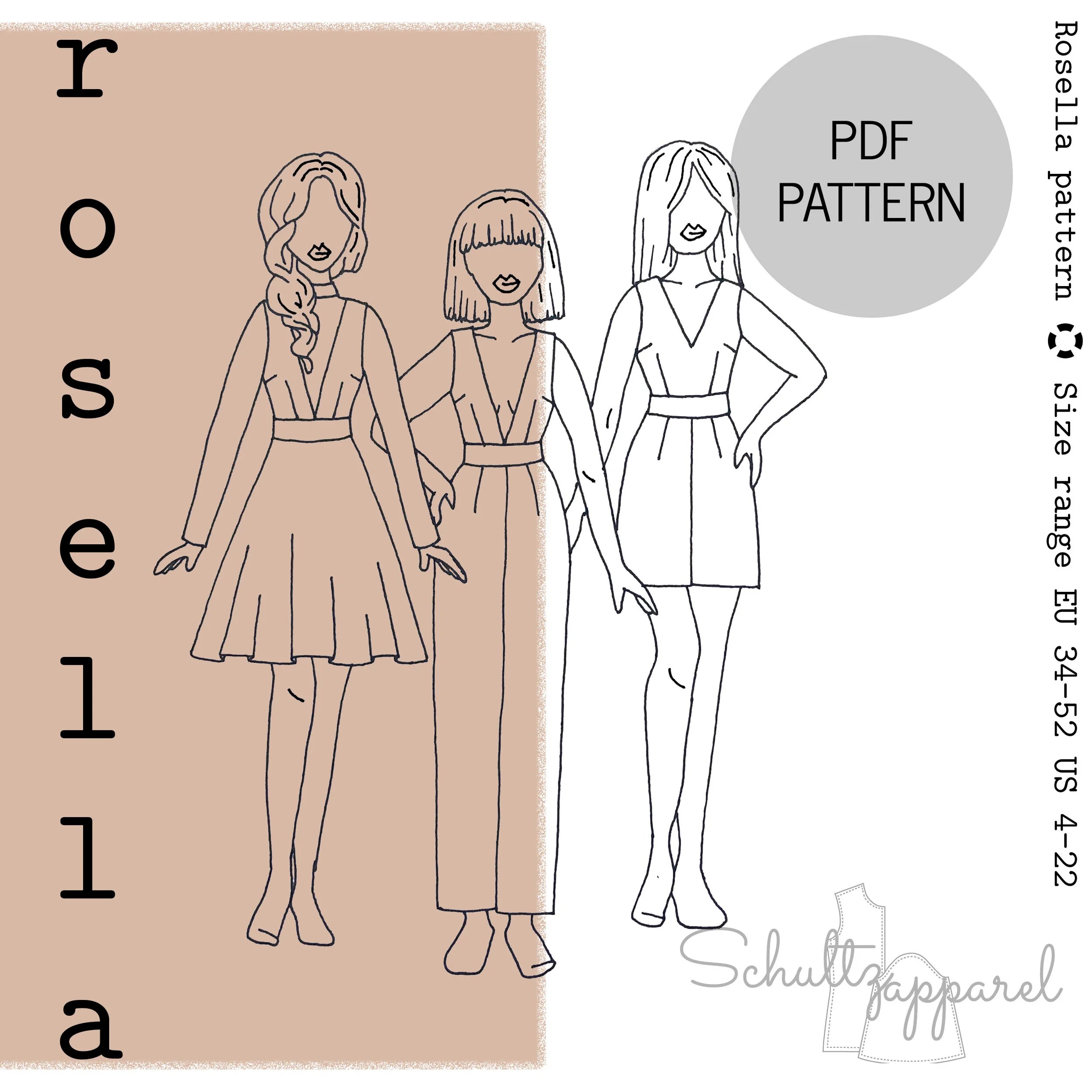 Rosella dress, jumpsuit and playsuit pattern for women. Size range EU 34-52 // US 4-22