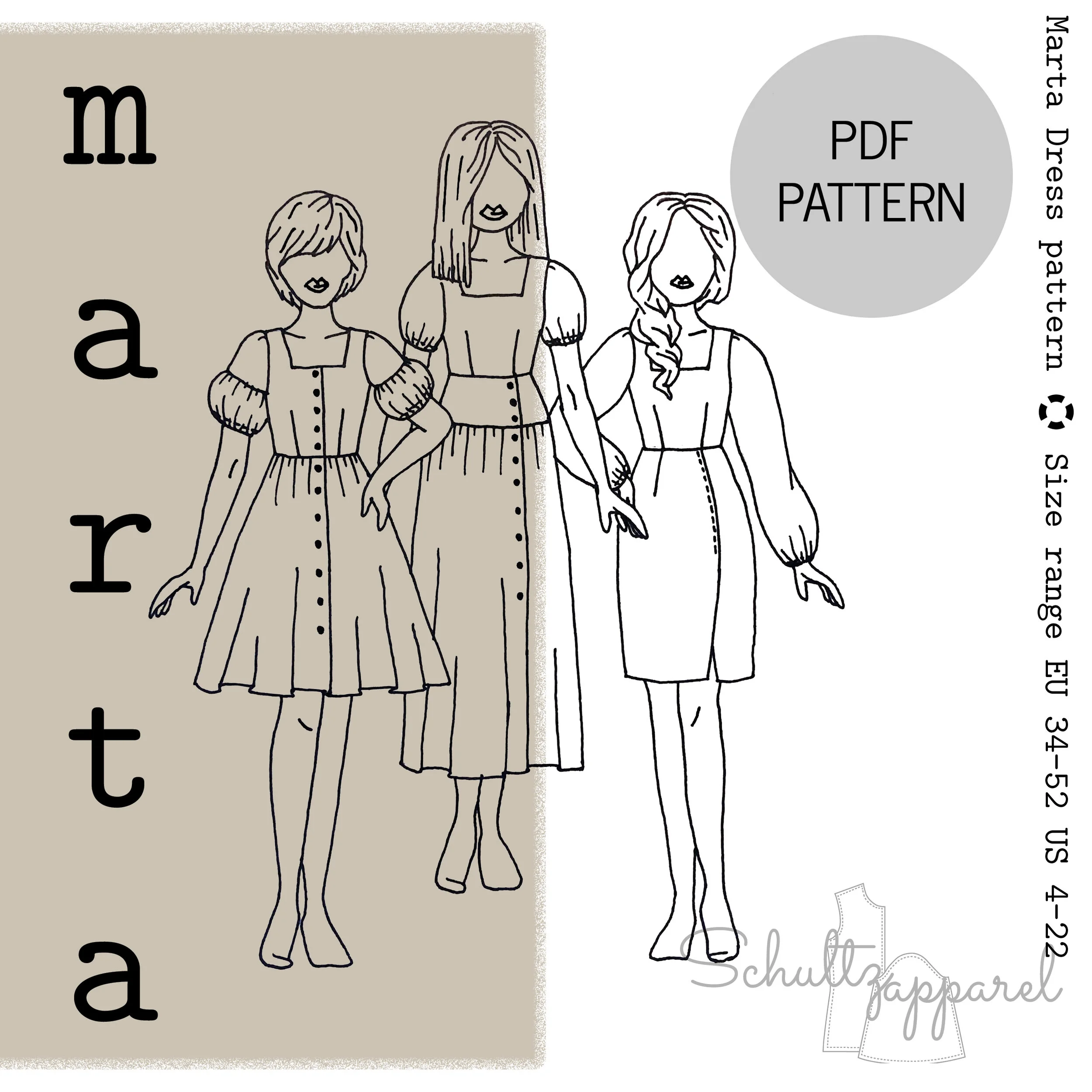 Marta Dress pattern for women. Size range EU 34-52 // US 4-22